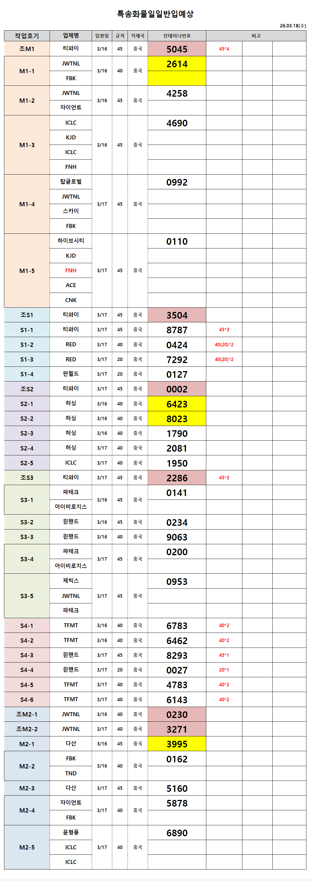 제목 : 3월18일 작업순번