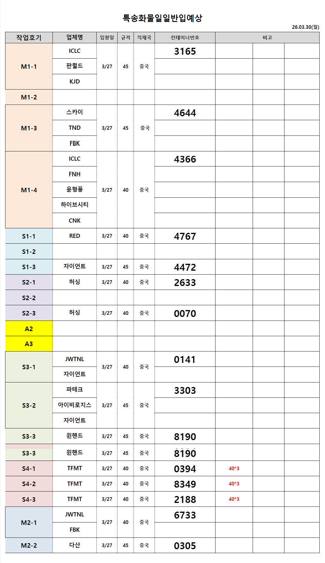제목 : 3월30일 작업순번